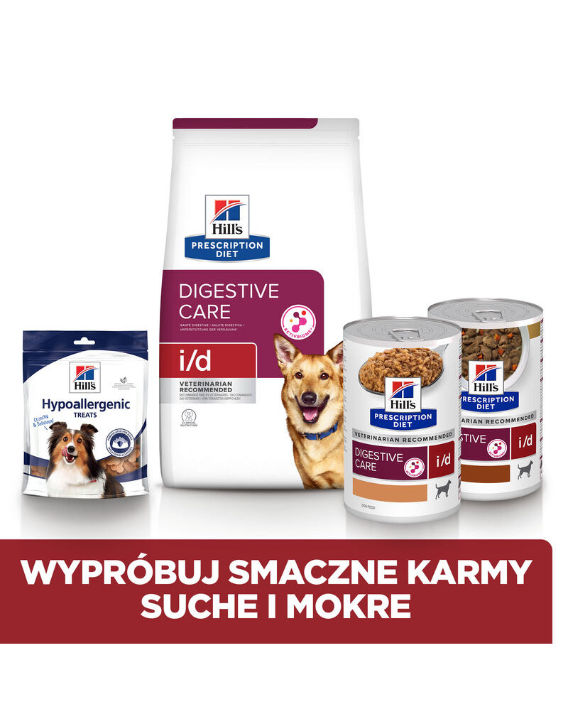 Prescription Diet Canine i/d è un alimento dietetico completo per cani che riduce l'insorgenza di malassorbimento acuto e compensa le carenze causate da malassorbimento e insufficienza pancreatica esocrina. Il mangime contiene livelli elevati di elettroliti, ingredienti altamente digeribili e bassi livelli di grassi.