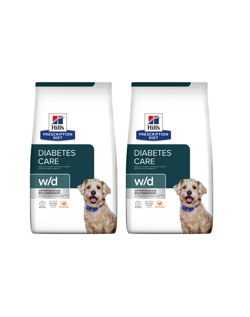 Hill's Prescription Diet w/d con una formula unica per favorire il controllo del glucosio nel cane. La dieta w/d a basso contenuto di carboidrati e la miscela ottimale di fibre solubili e insolubili aiutano a regolare i livelli di glucosio nel sangue e a mantenere un peso corporeo sano. La miscela di nutrienti equilibrati garantirà al vostro cane una vita migliore.