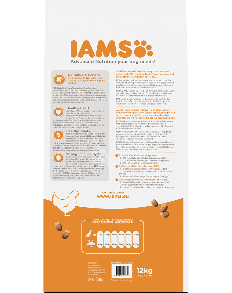 Pollo e tacchino essiccati 30% (di cui pollo 18%), mais, granella di mais, orzo, grasso animale, pollo fresco (4,7%), sorgo, polpa di barbabietola essiccata (2,7%), salsa di pollo, minerali (tra cui esametafosfato di sodio (0,38%)), frutto-oligosaccaridi (0,21%), lievito di birra essiccato, glucosamina (derivata da tessuto animale) (0,04%)