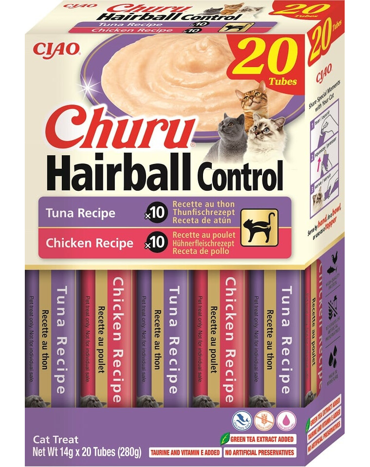 Churu Hairball Control non è solo una gustosa ricompensa: è un supporto intelligente per la salute del tuo gatto, in una forma cremosa e appetitosa.