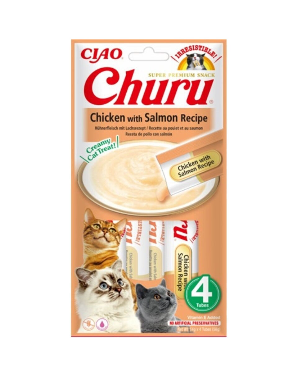 Churu Chicken with Salmon - Il cremoso bocconcino per gatti Churu al gusto di pollo.