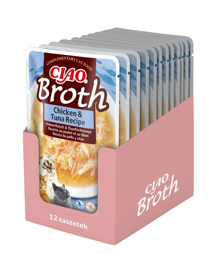Ingredienti: brodo aromatizzato al pollo (68,0%), pollo (15,0%), tonno (15,0%), tapioca (essiccata). Additivi per kg: Additivi tecnologici: gomma di guar, gomma di xantano. Additivi sensoriali: aromi, Camellia thea Link. Additivi dietetici: vitamina E 560 mg.