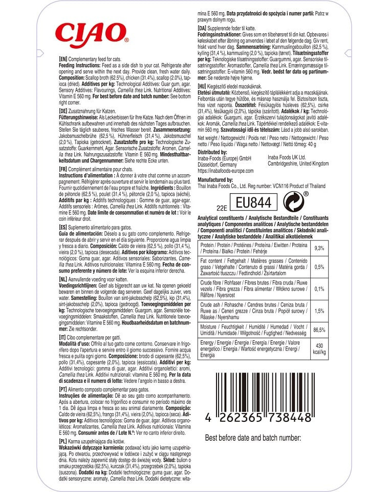 INABA CIAO Stew è un alimento complementare per gatti con pollo e capesante in salsa