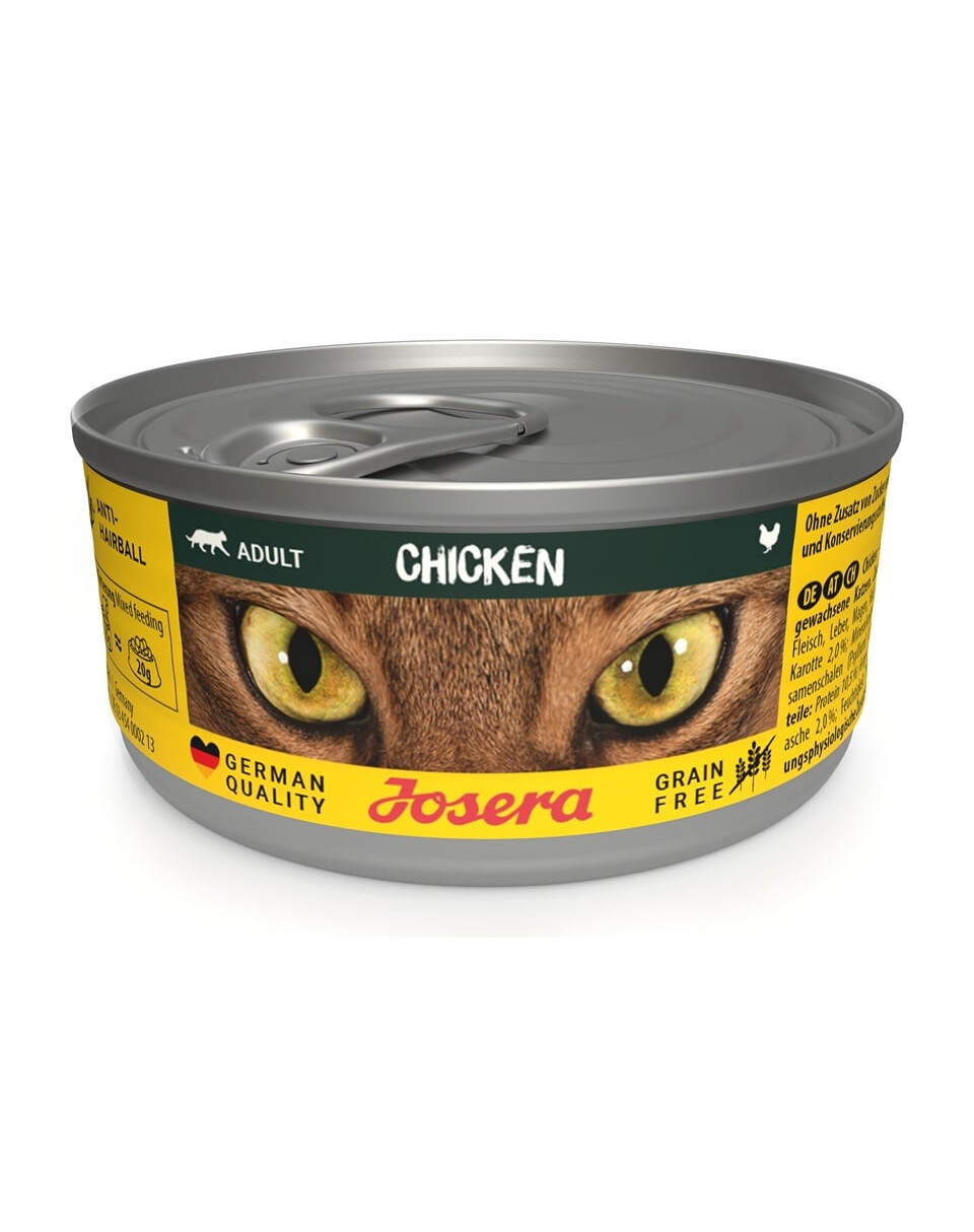 Mmm, è tempo di un delizioso cambiamento! La nostra nuova gamma di cibi umidi in scatola per gatti offre ancora più scelta e ancora più sapori nella ciotola. Il tuo amico a quattro zampe sarà entusiasta del delizioso piatto Josera Chicken con tenero pollo. La ricetta senza cereali è arricchita con olio di salmone, che fornisce acidi grassi omega-3 essenziali e migliora le qualità gustative.