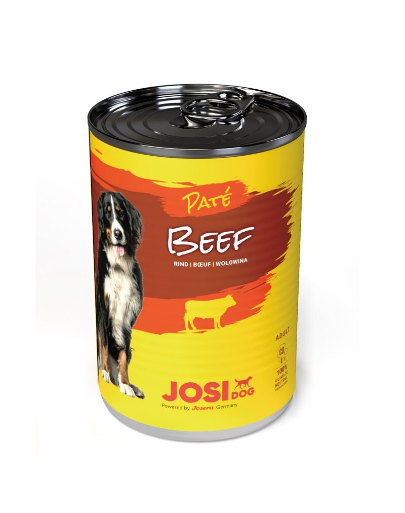 La scelta di questo pasto è in grado di soddisfare tutti gli animali domestici a quattro zampe. Il paté di manzo JosiDog è un nuovo gusto tra gli alimenti umidi Josi. Si tratta di un vero paté di carne, ricco di manzo. La ricetta è arricchita con vitamine - E e D3 - per fornire ai cani tutto ciò di cui hanno bisogno nella loro dieta. Come sempre, senza coloranti o conservanti artificiali!