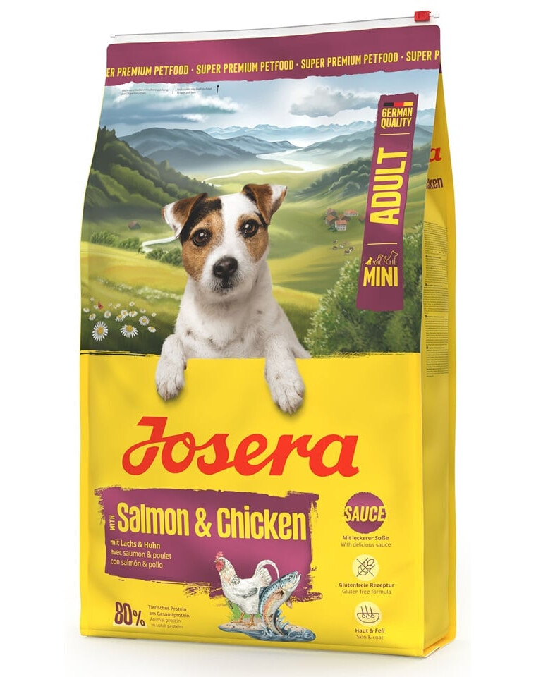JOSERA Mini Adult Salmon & Chicken – cibo senza glutine con salsa per cani adulti di piccola taglia