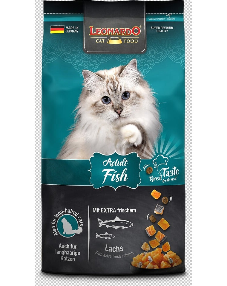 LEONARDO Adult Pesce e Riso è un alimento secco per gatti adulti (a partire da un anno di età).