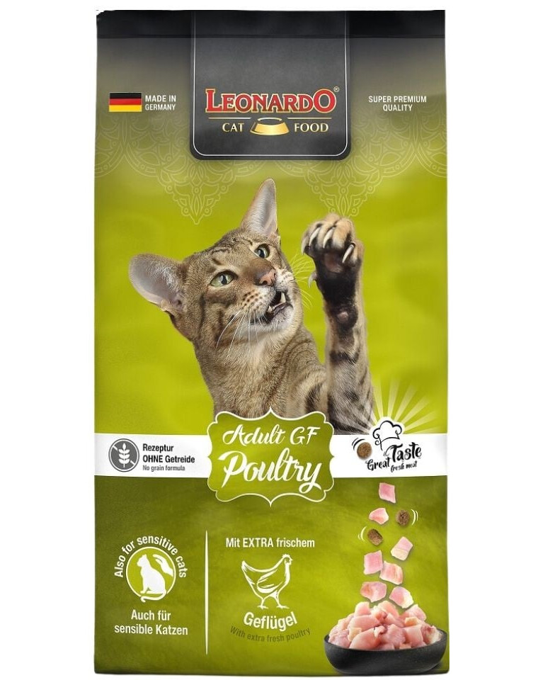 Alimento con pollame extra fresco adatto a gatti sensibili e soggetti a intolleranze e allergie alimentari. È privo di cereali e glutine, sostituiti dall'amaranto, ricco di sostanze nutritive. La ricetta è stata arricchita con semi di chia e zooplancton marino, molto apprezzato dai gatti. Gli alti livelli di acidi grassi omega-3 e la presenza di lecitina contribuiscono a mantenere la pelle sana e il pelo lucido.