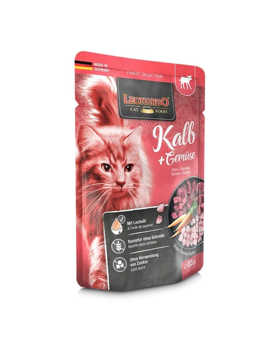 Gli alimenti Leonardo Finest Selection sono disponibili in pratiche porzioni monodose. Contengono carne delicatamente cotta e succosa con ingredienti raffinati. L'aggiunta di olio di salmone migliora le condizioni della pelle e del pelo del gatto. Il cibo umido fornisce un'eccellente varietà alimentare in aggiunta al cibo secco di Leonardo.