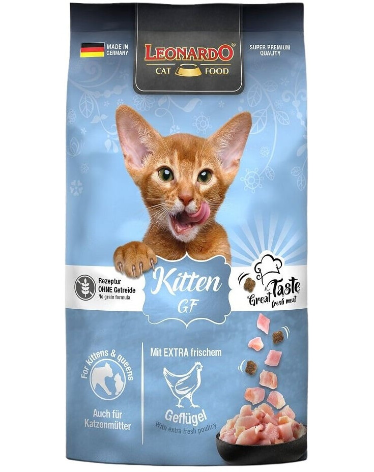 Molti proprietari di gatti, scegliendo il cibo per il loro gattino, preferiscono formule senza cereali. Per questo motivo, LEONARDO Kitten Grain Free utilizza l'amaranto come preziosa alternativa senza glutine ai cereali. La sgombro e il pollame fresco offrono un sapore eccellente ai piccoli. La ricetta è completata da altri ingredienti selezionati, come lo zooplancton marino e i semi di chia come fonti naturali di sostanze importanti, come gli acidi grassi omega-3. I nostri ingredienti essenziali forniscono un inizio ottimale per la vita del gatto: STAY-Clean™* supporta la cura dei denti, mentre ProVital rinforza il sistema immunitario. *STAY-Clean™ è un marchio registrato di DSM Nutritional Products AG.