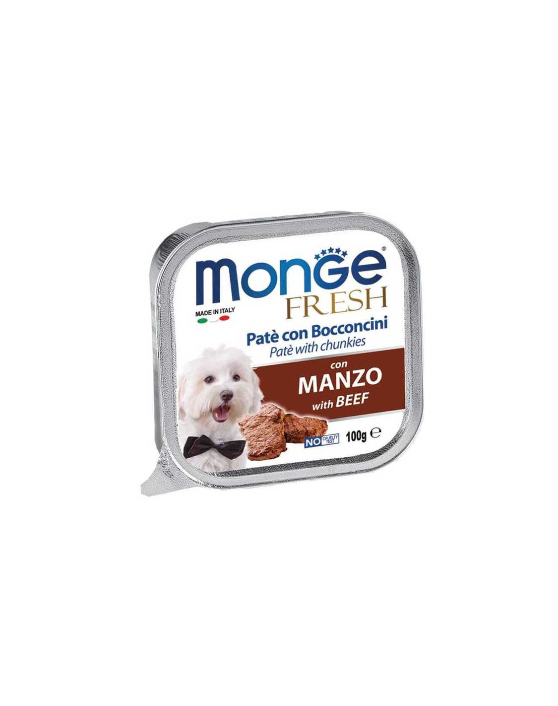 Monge FRESH è un delizioso paté a pezzetti palpabili, creato secondo una ricetta originale italiana. L'80% del contenuto è carne fresca. Estremamente nutriente con carne di manzo fresca, senza coloranti, conservanti o grassi trans.