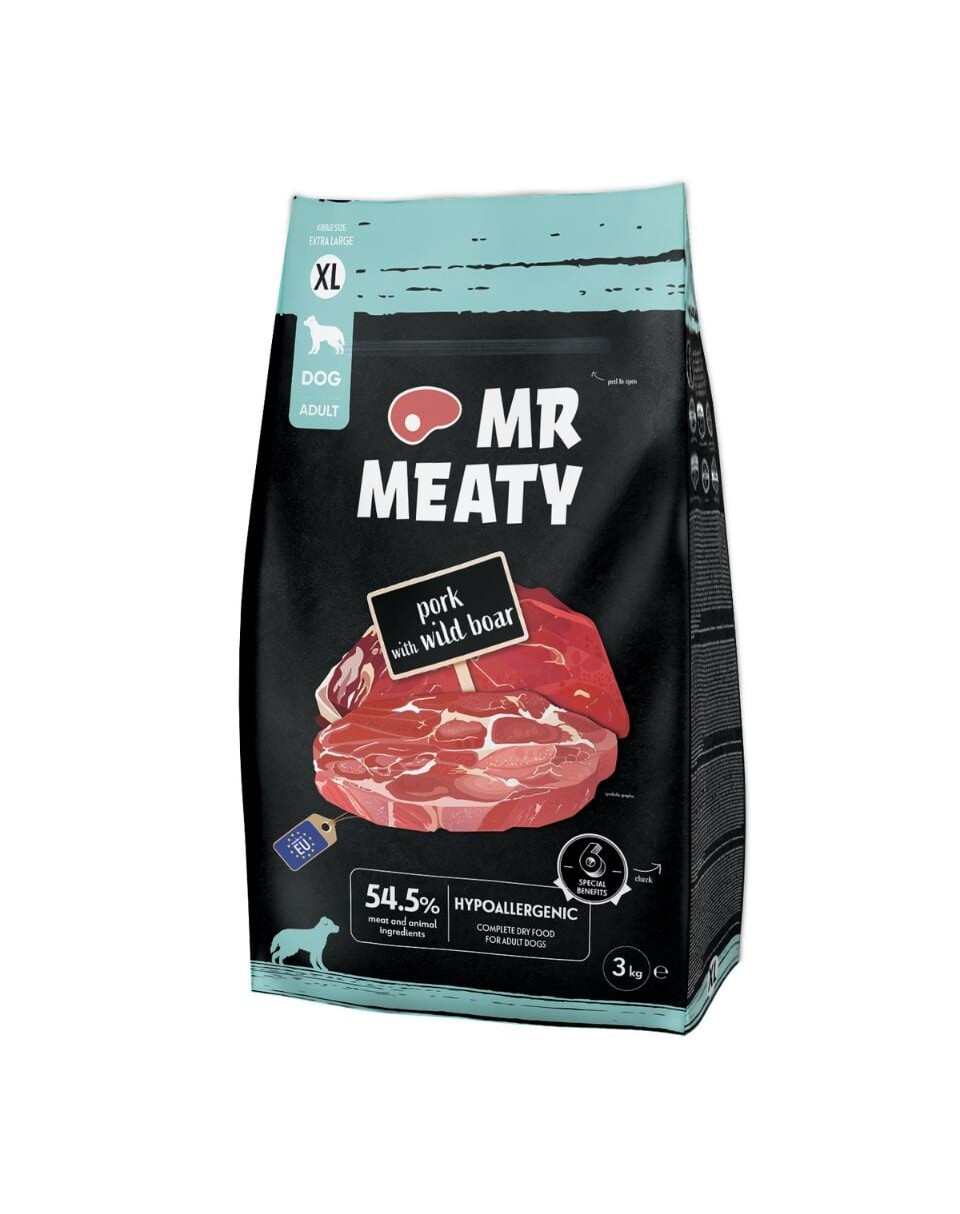 Scopri il cibo secco per cani Mr Meaty. Ciò che lo distingue dagli altri alimenti è la selezione accurata degli ingredienti, succose mele polacche, verdure sane e preziosi nutrienti che aiutano a mantenere il tuo cane in salute e in buona forma. Le nostre ricette sono state sviluppate da specialisti per fornire al tuo amico a quattro zampe tutto ciò di cui ha bisogno. Il tuo cane merita solo il meglio.