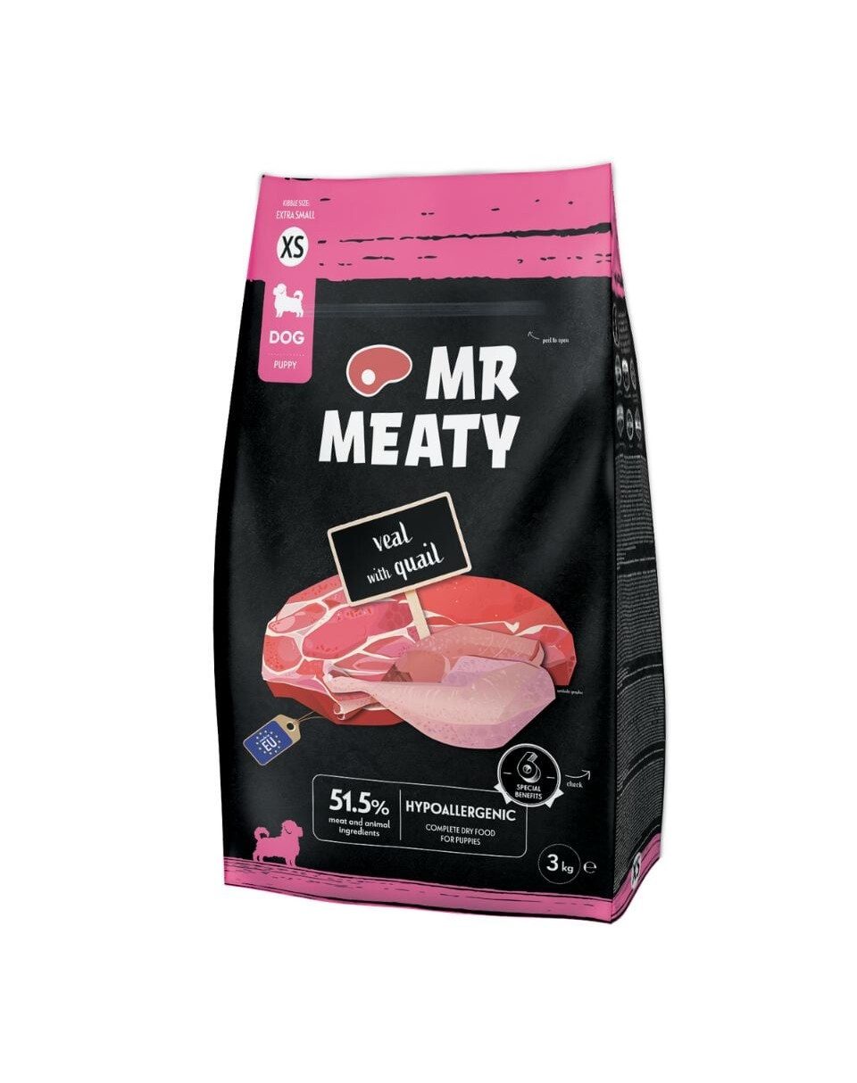 Scopri il cibo secco per cani Mr Meaty. Ciò che lo distingue dagli altri alimenti è la selezione accurata degli ingredienti, succose mele polacche, verdure sane e preziosi nutrienti che aiutano a mantenere il tuo cane in salute e in buona forma. Le nostre ricette sono state sviluppate da specialisti per fornire al tuo amico a quattro zampe tutto ciò di cui ha bisogno. Il tuo cane merita il meglio.