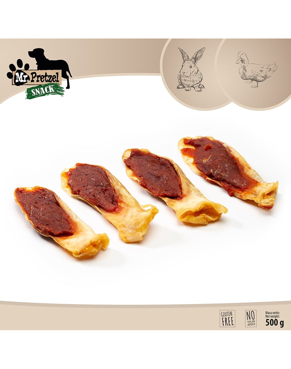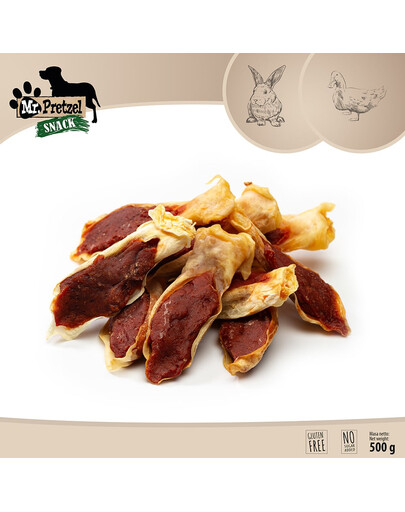 Mr. Pretzel Snack per cani Orecchie di coniglio con anatra 500g