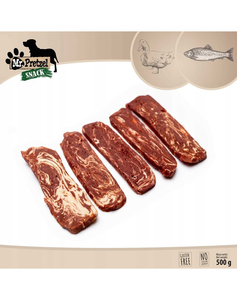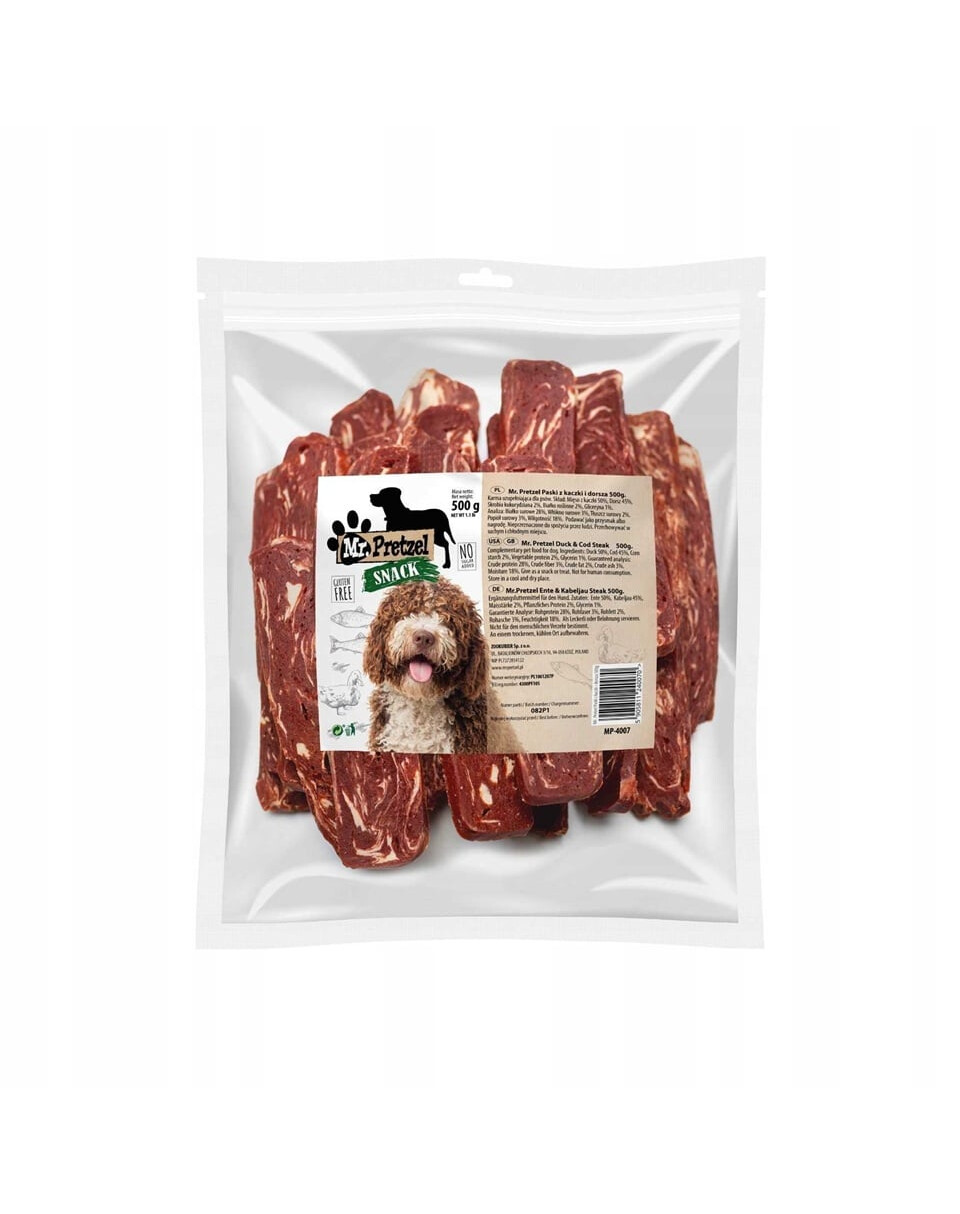 I filetti morbidi di anatra del marchio Mr. Pretzel sono snack di alta qualità per cani, creati pensando alla salute e alla gioia del tuo animale domestico.