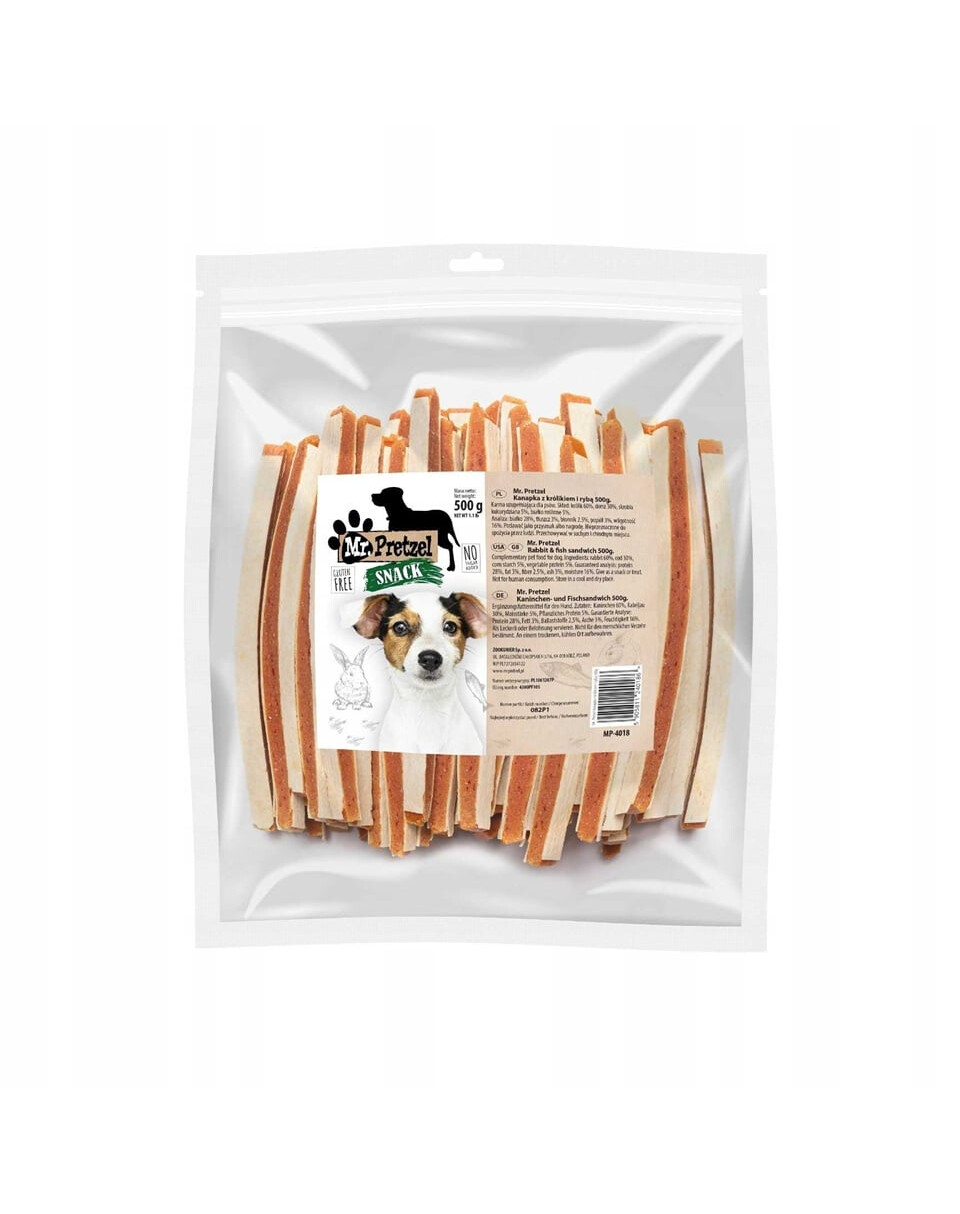 Gli snack Mr. Pretzel Strisce di coniglio e merluzzo sono una scelta eccellente come spuntino quotidiano o premio per l'addestramento.