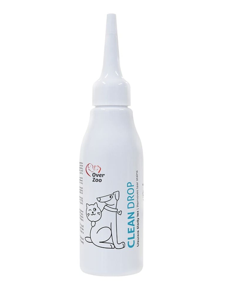 OVER ZOO Clean Drop è un liquido specifico studiato per ridurre le discromie causate dall'eccessiva lacrimazione in cani, gatti e altri piccoli animali domestici. L'uso regolare aiuta a ridurre la comparsa delle occhiaie e migliora l'aspetto della zona perioculare. Il prodotto è ampiamente utilizzato sia dagli allevatori che dai toelettatori professionisti.