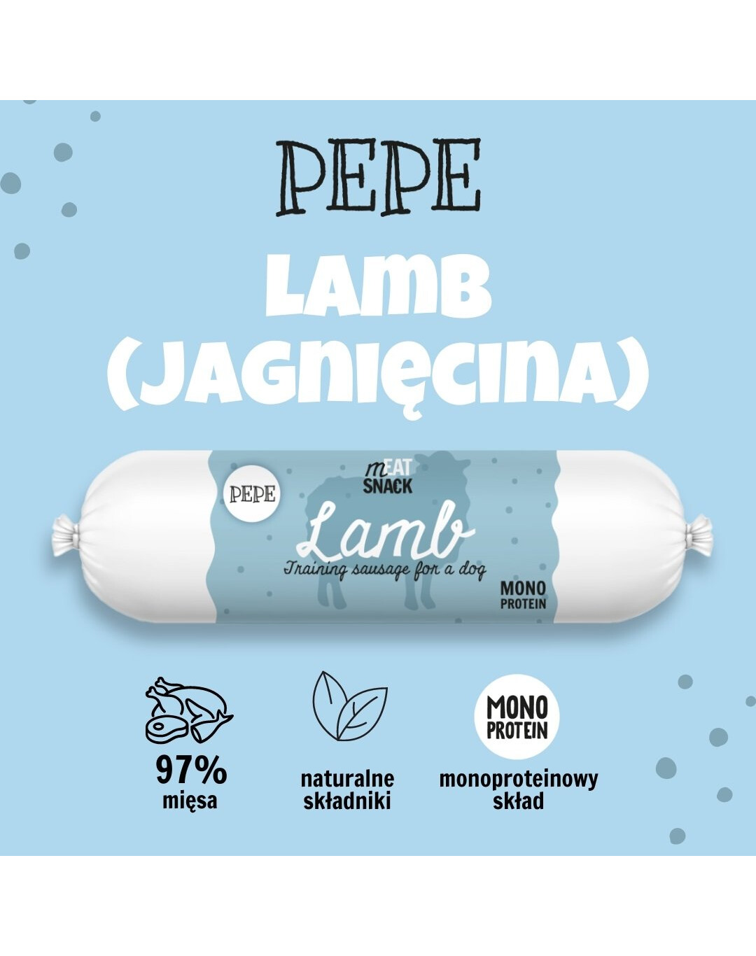 La salsiccia di agnello PEPE Meat Snack è l'aggiunta perfetta alla dieta del vostro cane!