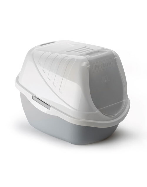 La toilette è dotata di una porta incernierata per il comfort dell'animale. Il prodotto è inoltre dotato di un filtro a carbone incorporato per assorbire gli odori sgradevoli. È compatibile con tutti i tipi di lettiera COMFY.
