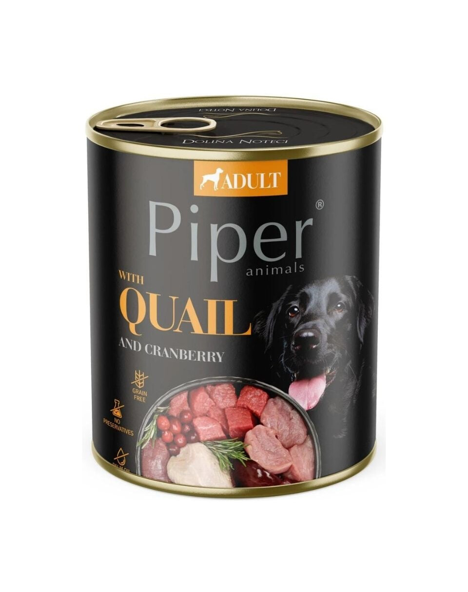 Composizione: carne e prodotti di origine animale 65% (manzo 10%, carne di quaglia 10%, fegato di pollo 6%, maiale 5%, cuore di manzo 5%), brodo, frutta (mirtilli rossi 4%), minerali, oli e grassi (olio di lino 0,2%), rosmarino secco 0,01%.