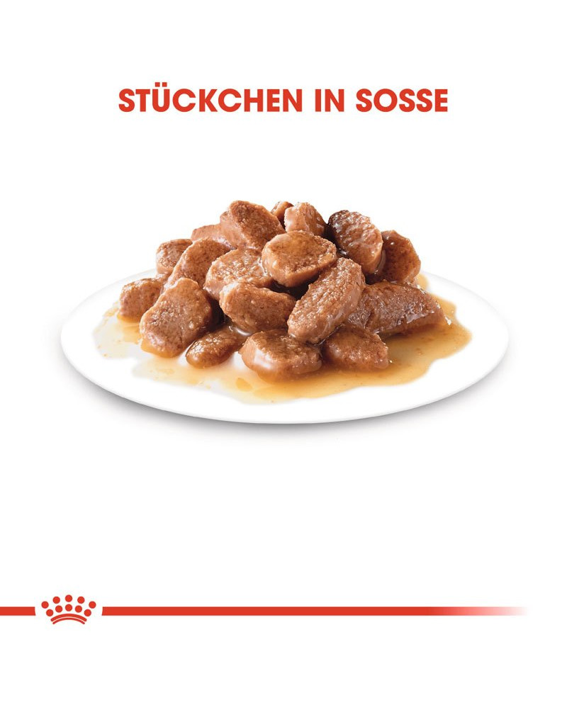 L'alimento ROYAL CANIN® Digest Sensitive sotto forma di pezzi in salsa è caratterizzato da un'appetibilità superiore e soddisferà anche gli appetiti più esigenti. Grazie al suo basso livello di grassi, questo alimento favorisce il mantenimento di un peso corporeo ottimale.