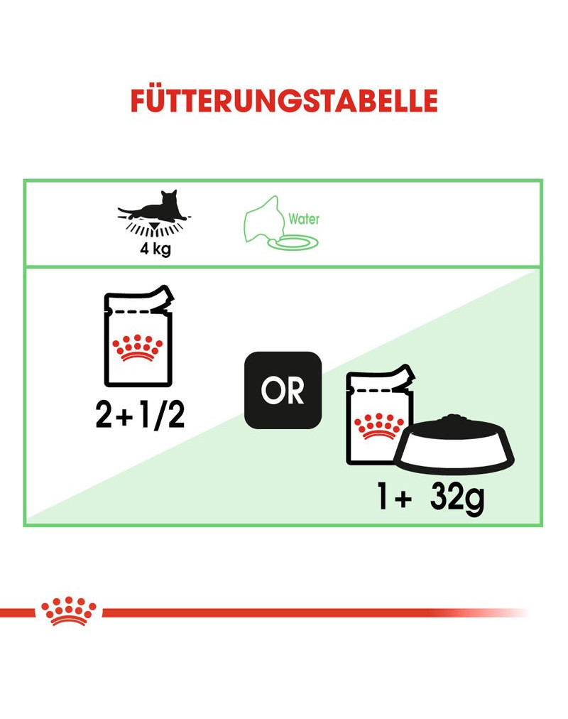 Tenendo conto delle preferenze alimentari dei gatti, il cibo ROYAL CANIN® Digest Sensitive è disponibile anche in forma secca, sotto forma di gustose crocchette. Quando si somministrano alimenti umidi e secchi, fare riferimento alla tabella di dosaggio per selezionare la porzione corretta di ciascun alimento.