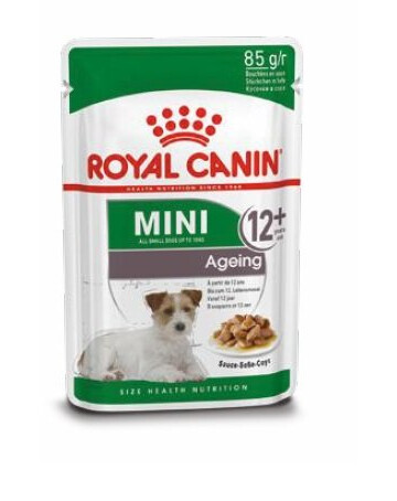 ROYAL CANIN Mini Aging sotto forma di pezzetti in salsa è un alimento completo, con una ricetta adeguatamente bilanciata in termini di nutrienti e sviluppata appositamente tenendo conto delle particolari esigenze dei cani anziani di piccola taglia. Alimento destinato a cani adulti di razza piccola (peso corporeo fino a 10 kg, di età superiore a 8 anni).