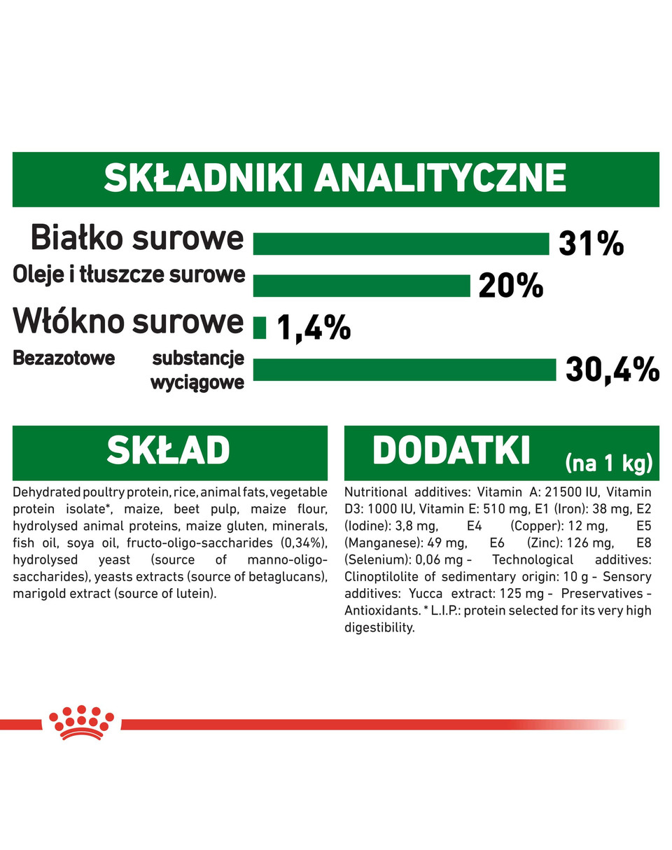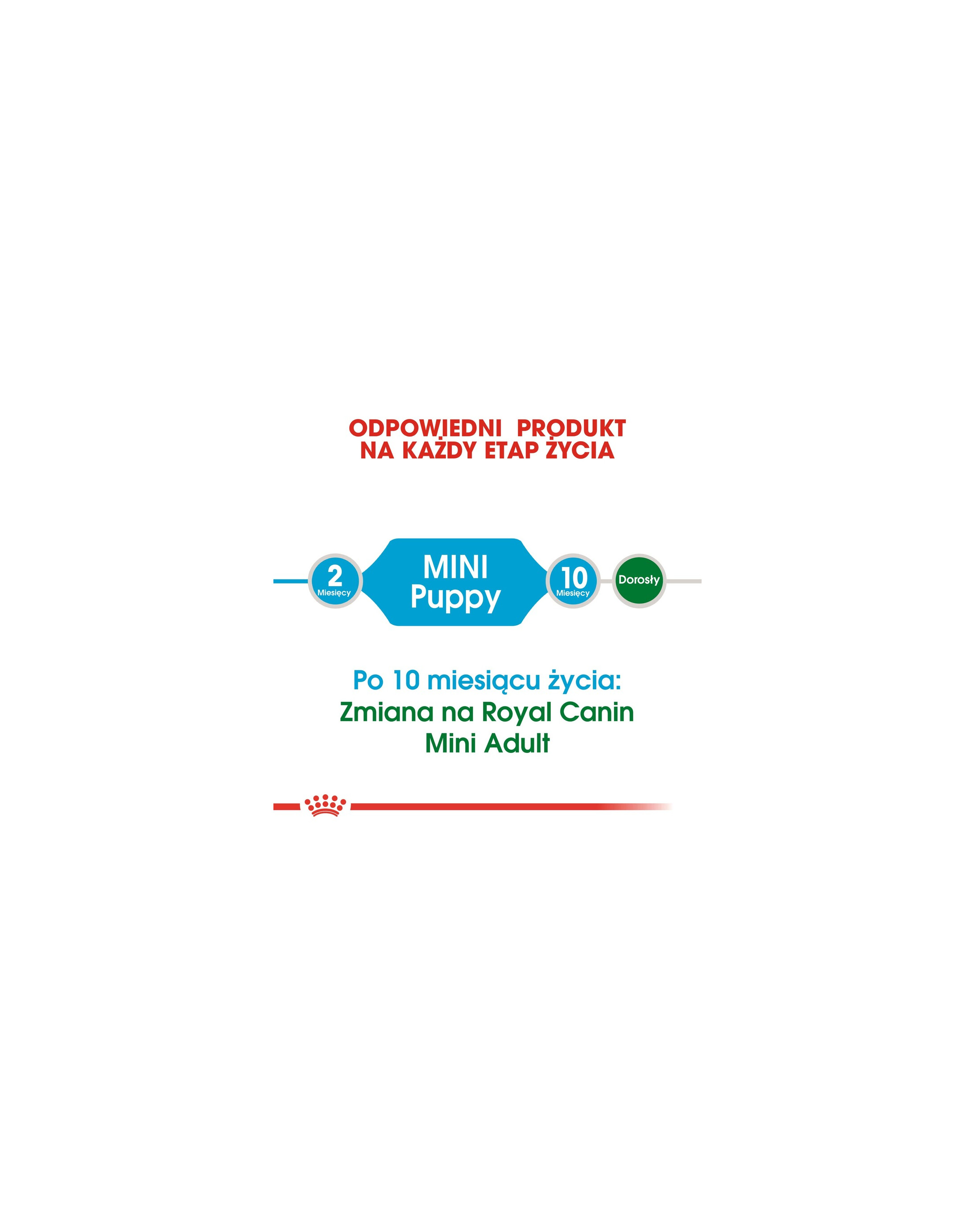 Il cibo secco ROYAL CANIN® Mini Puppy è stato appositamente formulato per coprire completamente le esigenze nutrizionali dei cuccioli di piccola taglia. L'alimento è adatto a cuccioli di età compresa tra i 2 e i 10 mesi, il cui peso corporeo alla fine della crescita non supererà i 10 kg.