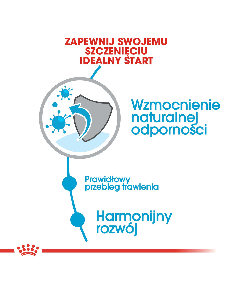 I cuccioli di razza piccola crescono molto rapidamente. Durante il periodo di crescita intensiva, hanno bisogno di una quantità ottimale di calorie e nutrienti per uno sviluppo sano. In questo periodo si sviluppano le ossa, la muscolatura, gli organi sensoriali e il sistema nervoso del cucciolo. Questo è anche il periodo in cui gli anticorpi trasmessi con il colostro materno iniziano a scomparire, quindi l'organismo del cucciolo ha bisogno di proteine sufficienti per sviluppare il proprio sistema immunitario.