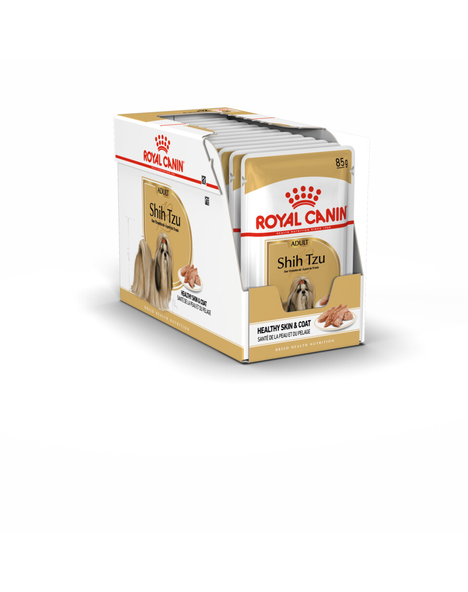 Il cibo umido ROYAL CANIN® Shih Tzu Adult è studiato per cani shih tzu adulti di età superiore ai 10 mesi ed è stato appositamente formulato per soddisfare le esigenze di questa razza di cani.