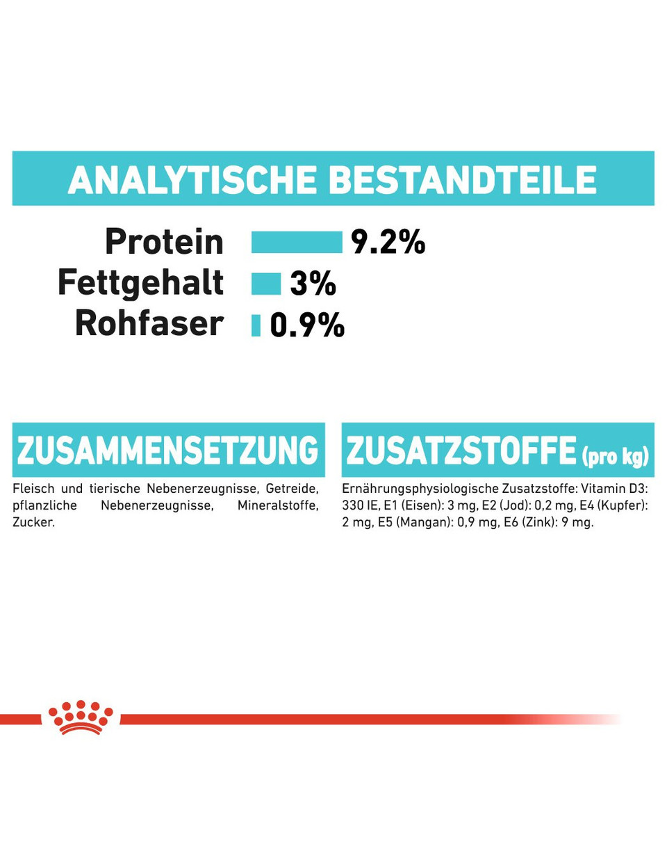 La missione di ROYAL CANIN® è fornire soluzioni nutrizionali su misura per le esigenze del vostro animale domestico. Tutti i nostri prodotti sono sottoposti a numerosi controlli di qualità per soddisfare i più alti standard del marchio e fornire al vostro gatto un alimento su misura per le sue esigenze nutrizionali. Il cibo umido in salsa ROYAL CANIN® Urinary Care è un alimento completo.
