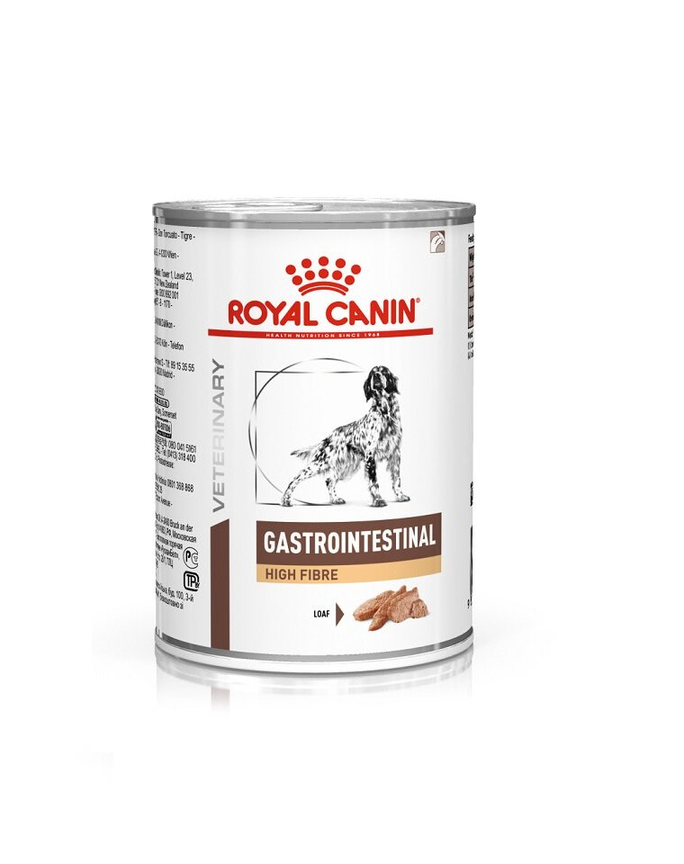 Il paté ROYAL CANIN GASTROINTESTINAL HIGH FIBRE è un alimento dietetico completo per cani, sviluppato per compensare i disturbi digestivi. Alimento altamente digeribile.