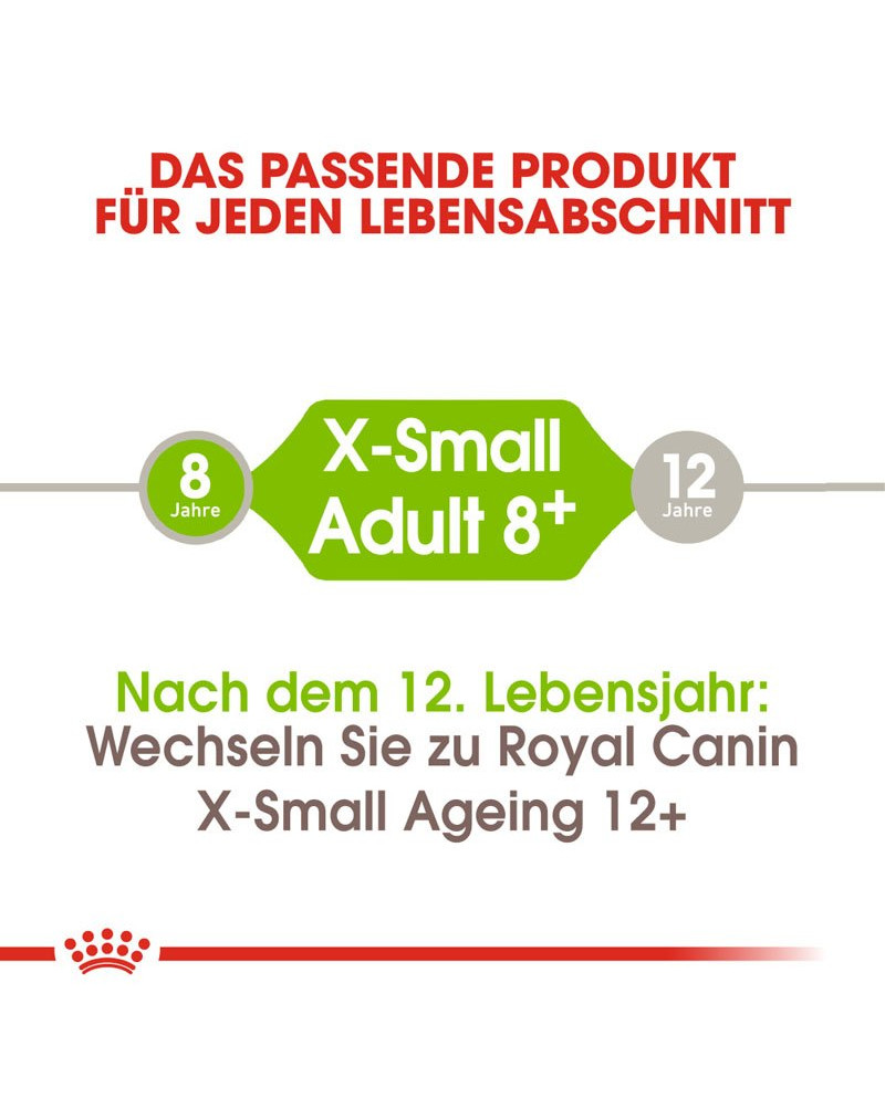 Nella categoria dei cani di piccola taglia possiamo distinguere un gruppo di cani il cui peso, una volta raggiunta la maturità, non supera i 4 kg. Questi cani molto piccoli si adattano perfettamente ai tempi moderni: sono adatti a vivere in spazi ridotti, sopportano molto bene la vita nelle grandi città, non creano grandi problemi e sono inclini a giocare con il loro proprietario. Per questo motivo Royal Canin ha creato per loro una linea speciale di cibi X-Small, che soddisfa tutte le esigenze dei cani di razze molto piccole, in ogni fase della loro vita.