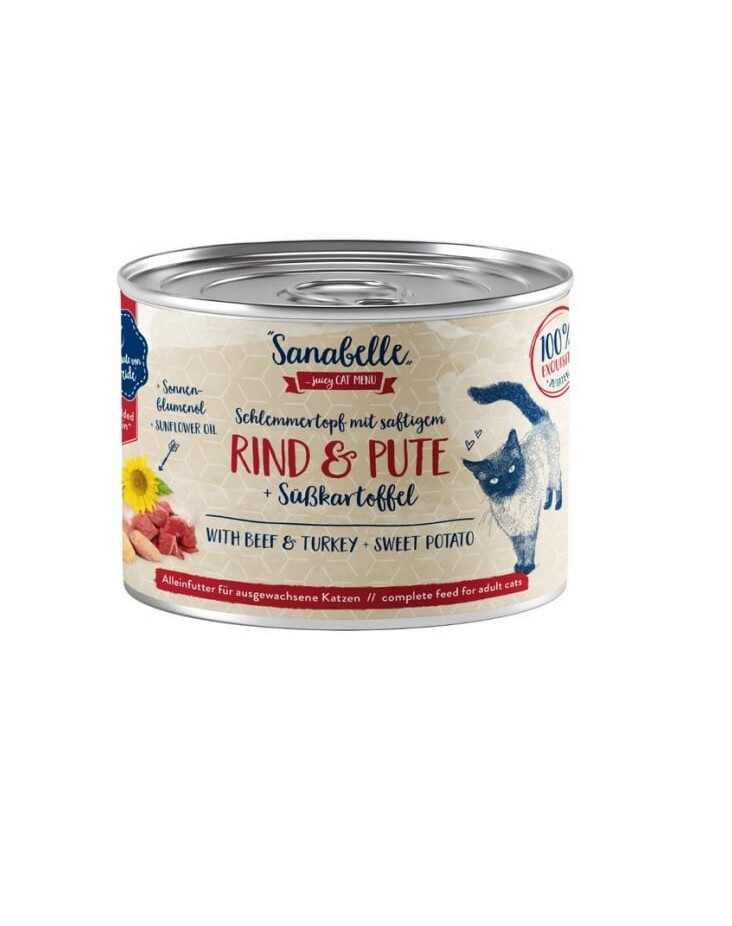 Tacchino fresco (30%), brodo di tacchino (27%), manzo fresco (14%), polmoni freschi (9%), colli d'anatra freschi (6%), cuori freschi (5%), patate dolci (4%), fegato fresco (3%), minerali (1%), olio di girasole (1%).