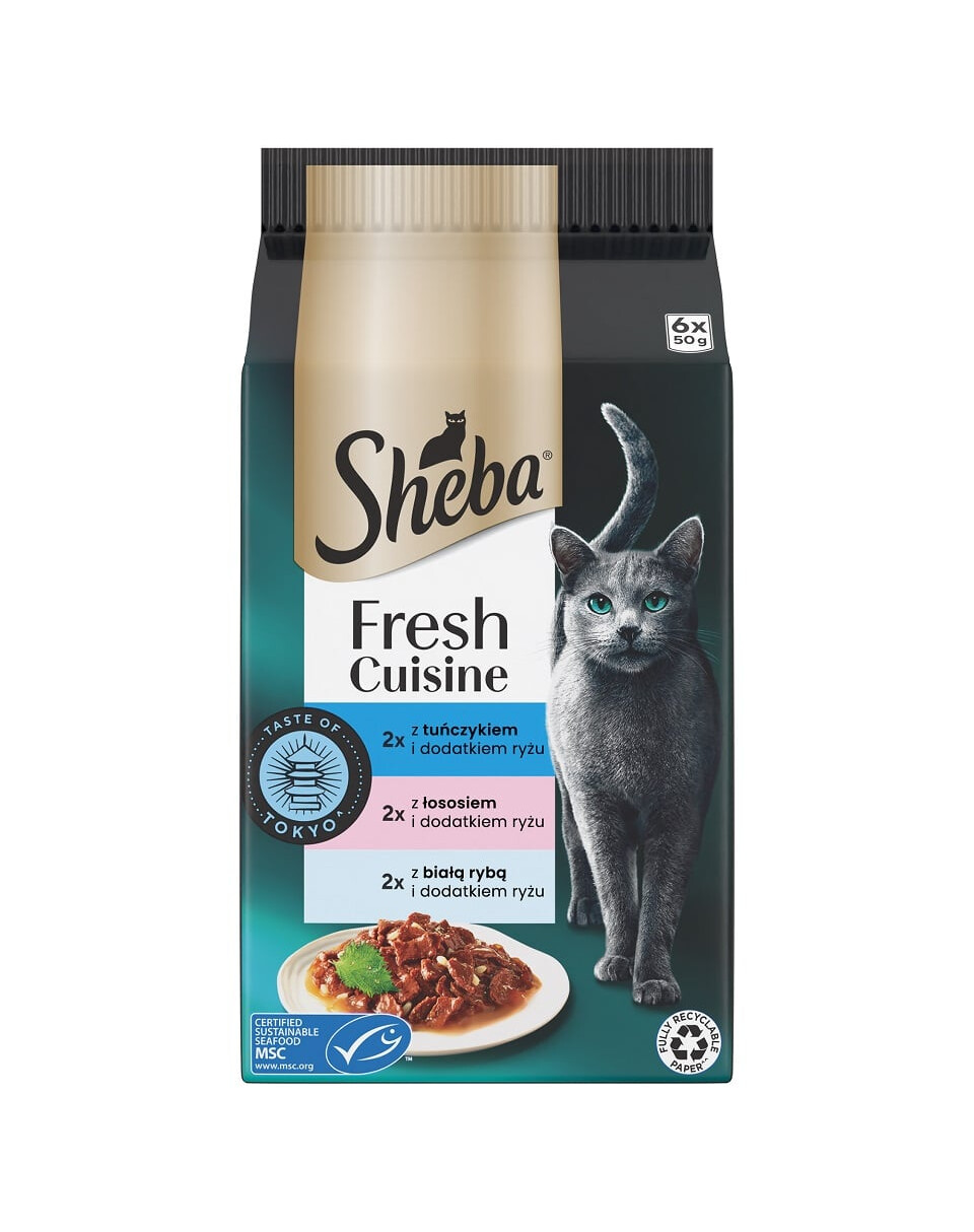 SHEBA Fresh Cuisine è un delizioso cibo completo per gatti adulti. È preparato in forma di teneri pezzi. Per la loro preparazione sono stati utilizzati solo ingredienti di altissima qualità. Grazie a ciò, puoi essere certo che il tuo gatto riceve un cibo squisito che fornisce tutti i nutrienti necessari. Questa opzione include pasti in tre gusti: con tonno e riso, con manzo e riso, con pesce bianco e riso. Delizia il tuo gatto con cibo ispirato alle più grandi metropoli culinarie del mondo.