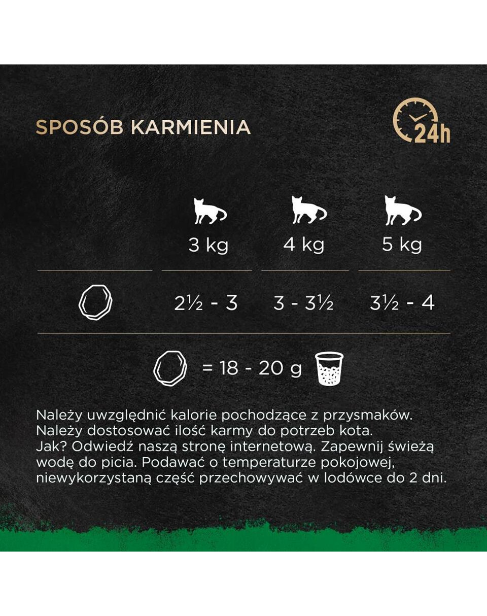 solo a titolo indicativo. Adatta la quantità di cibo all'età, alle dimensioni e al livello di attività del tuo gatto. Fornire acqua potabile fresca. Servire a temperatura ambiente, conservare l'eventuale porzione non utilizzata in frigorifero per un massimo di 2 giorni.