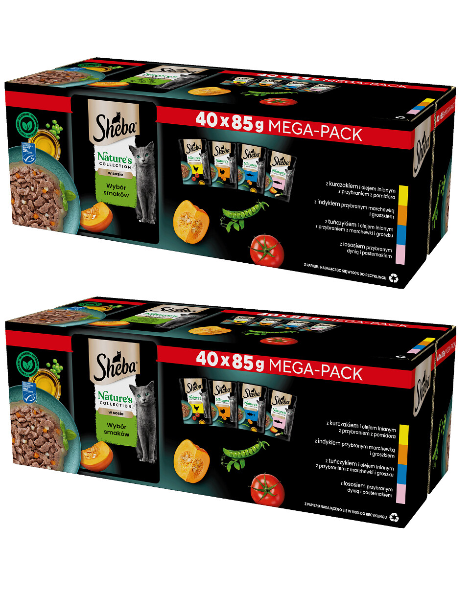 La selezione di sapori della collezione Sheba Nature è una miscela di pezzi delicati e accuratamente selezionati in una salsa squisita. Una proposta di piatti in 4 varianti di gusto, pezzi con: pollo e olio di lino con contorno di pomodoro, tacchino con carote e piselli, tonno e olio di lino con contorno di carota e piselli, salmone con contorno di zucca e pastinaca, delizieranno i palati di anche i gatti più esigenti. Piatti preparati con maestria con ingredienti naturali di alta qualità, con vitamine e minerali. Queste ricette senza cereali delizieranno il tuo gatto con il meglio della natura. Ogni bustina contiene sostanze nutritive che supportano il corretto funzionamento del tuo gatto. Lascia che il tuo gatto goda delle delizie culinarie gustando il delizioso cibo Sheba® Nature's Collection Selection of Flavours che soddisferà anche l'appetito più esigente.