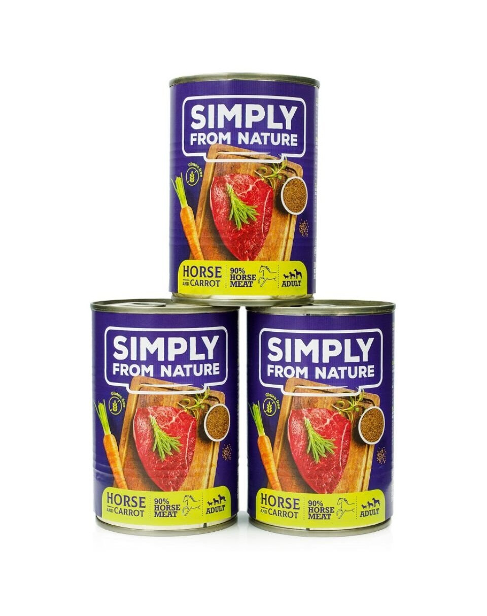 La carne di cavallo è considerata particolarmente preziosa e delicata per il tratto digestivo del cane. Ha un basso potenziale allergico e può essere utilizzato nella dieta dei cani che soffrono di allergie. Una piccola percentuale di grasso nella carne, così come un'abbondanza di vitamine del gruppo B, ferro e fosforo, consente di rafforzare l'immunità e mantenere buone condizioni dei cani in ogni fase della vita. Il 90% di carne equina presente nell'alimento garantisce un'elevata digeribilità e un più rapido senso di sazietà.