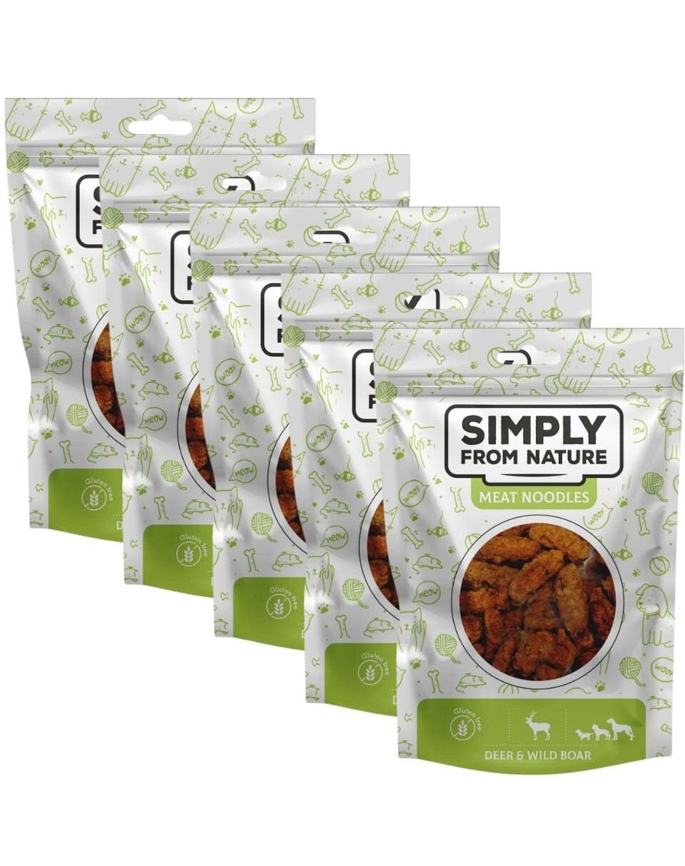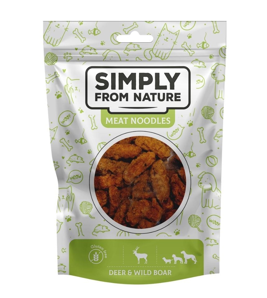 Simply from Nature Meat Noodles è un alimento complementare per cani. Si consiglia di somministrare i croccantini tra un alimento intero e l'altro. Non sovralimentare il cane.