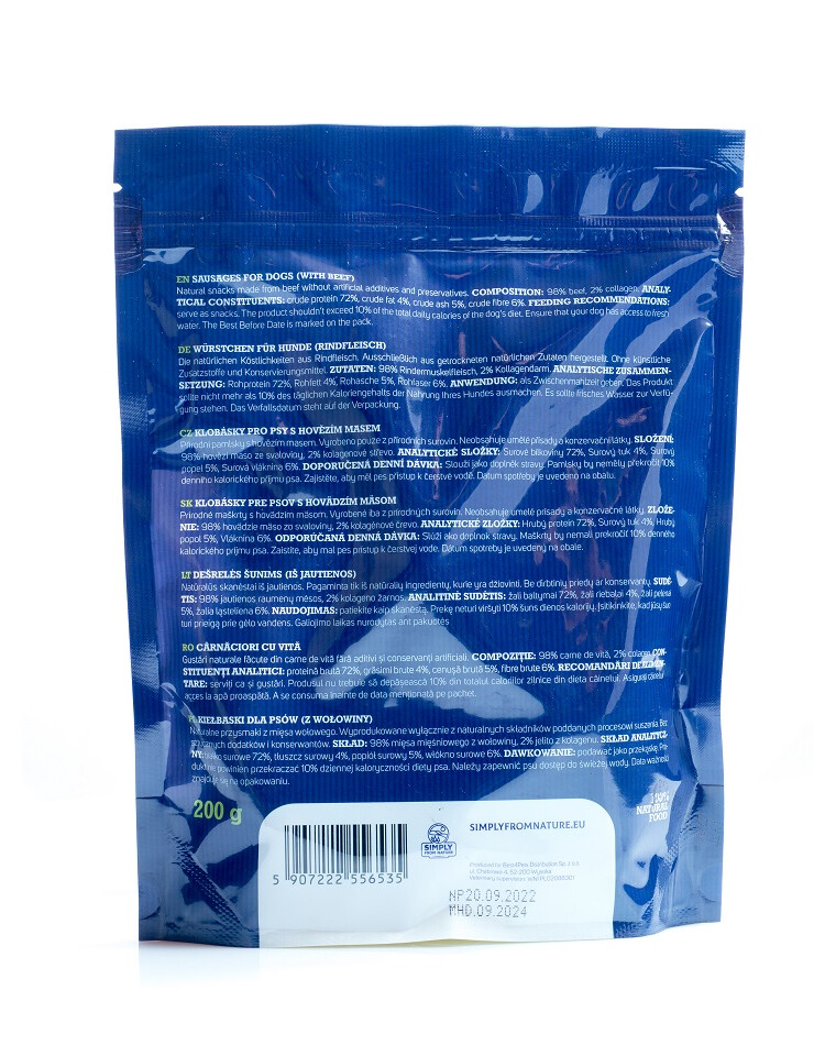 Le salsicce sono un alimento complementare e non devono costituire la base della dieta del cane. Come spuntino, non dovrebbero superare il 10% del contenuto calorico giornaliero della dieta dell'animale. Da servire tra i pasti principali, come ricompensa durante l'allenamento e le passeggiate.