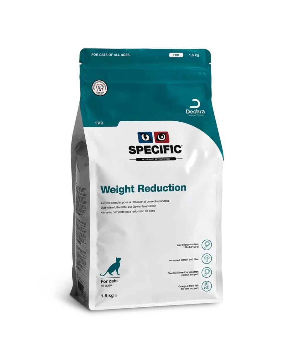 SPECIFIC Cat FRD Weight Reduction è un alimento secco per gatti adulti in sovrappeso, diabetici o costipati.