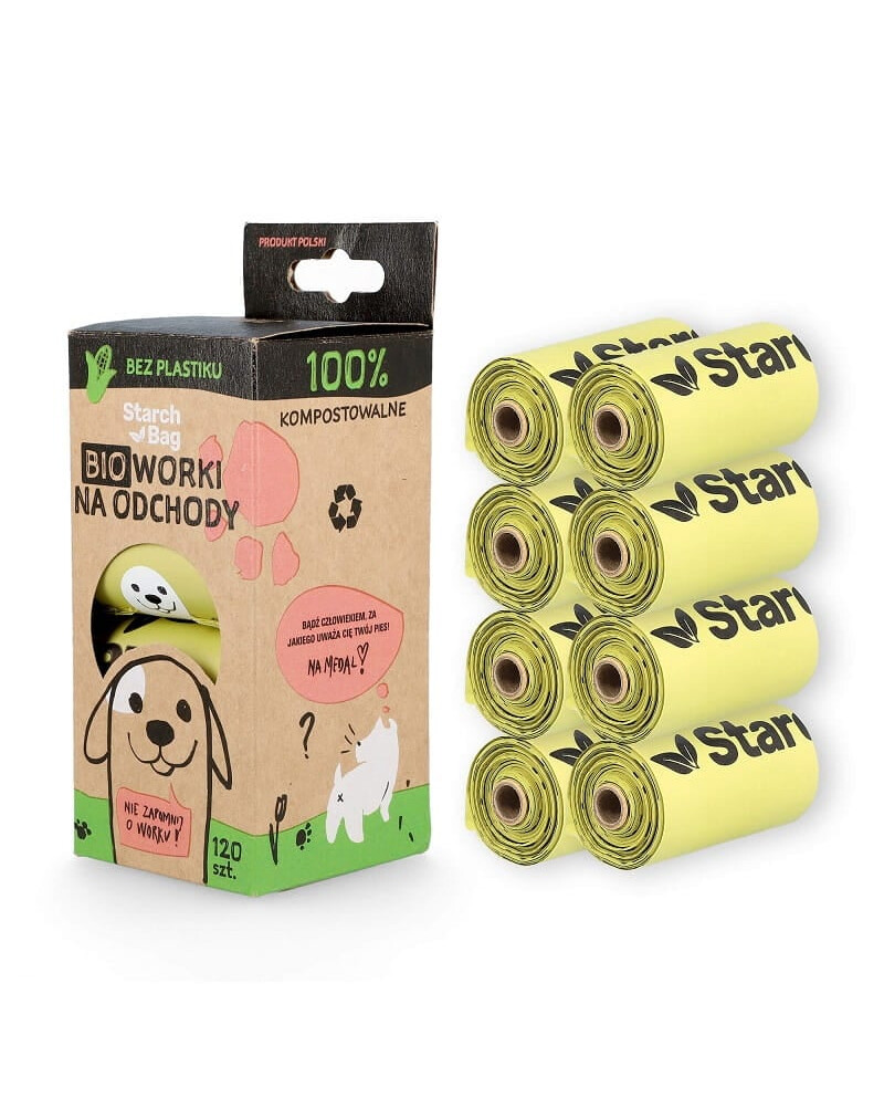 I sacchetti per la cacca del cane della migliore qualità sono realizzati con biopolimeri a base di amido di mais certificati da OK Compost HOME.