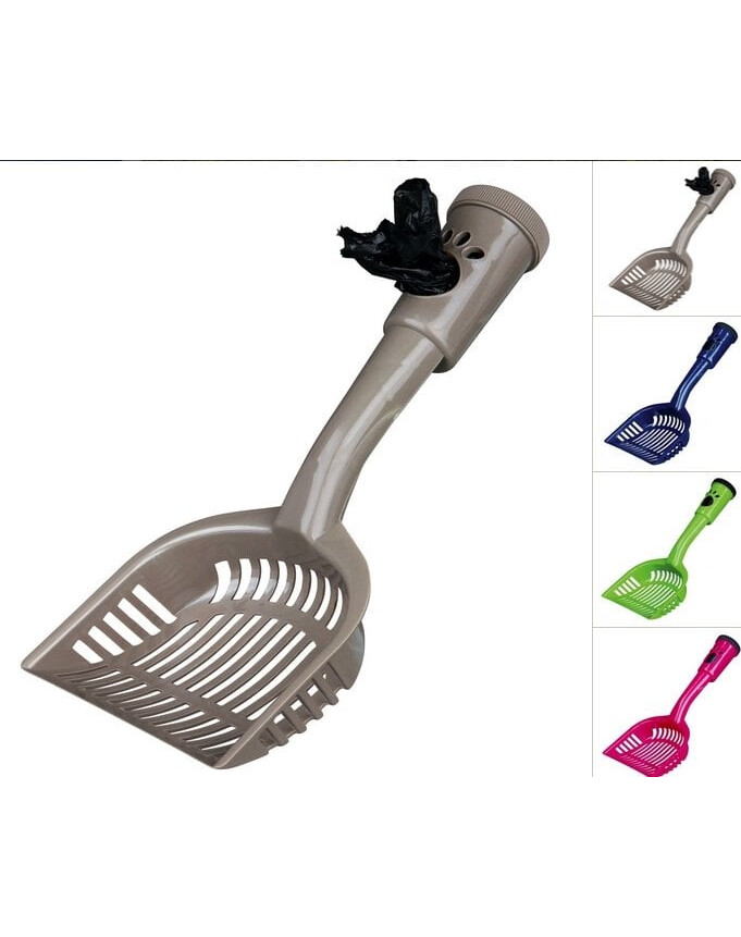 Paletta per lettiera, con sacchetto per rifiuti nel manico (20 sacchetti in dotazione). Taglia M, 38 cm. Colori assortiti, il colore verrà inviato casualmente.