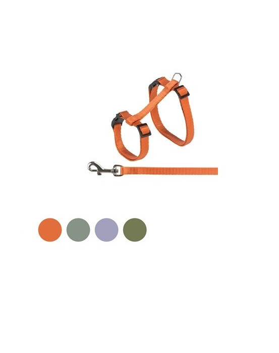 Pettorina regolabile per gatti con cinghia e fibbia di sicurezza che si apre facilmente in caso di necessità.
