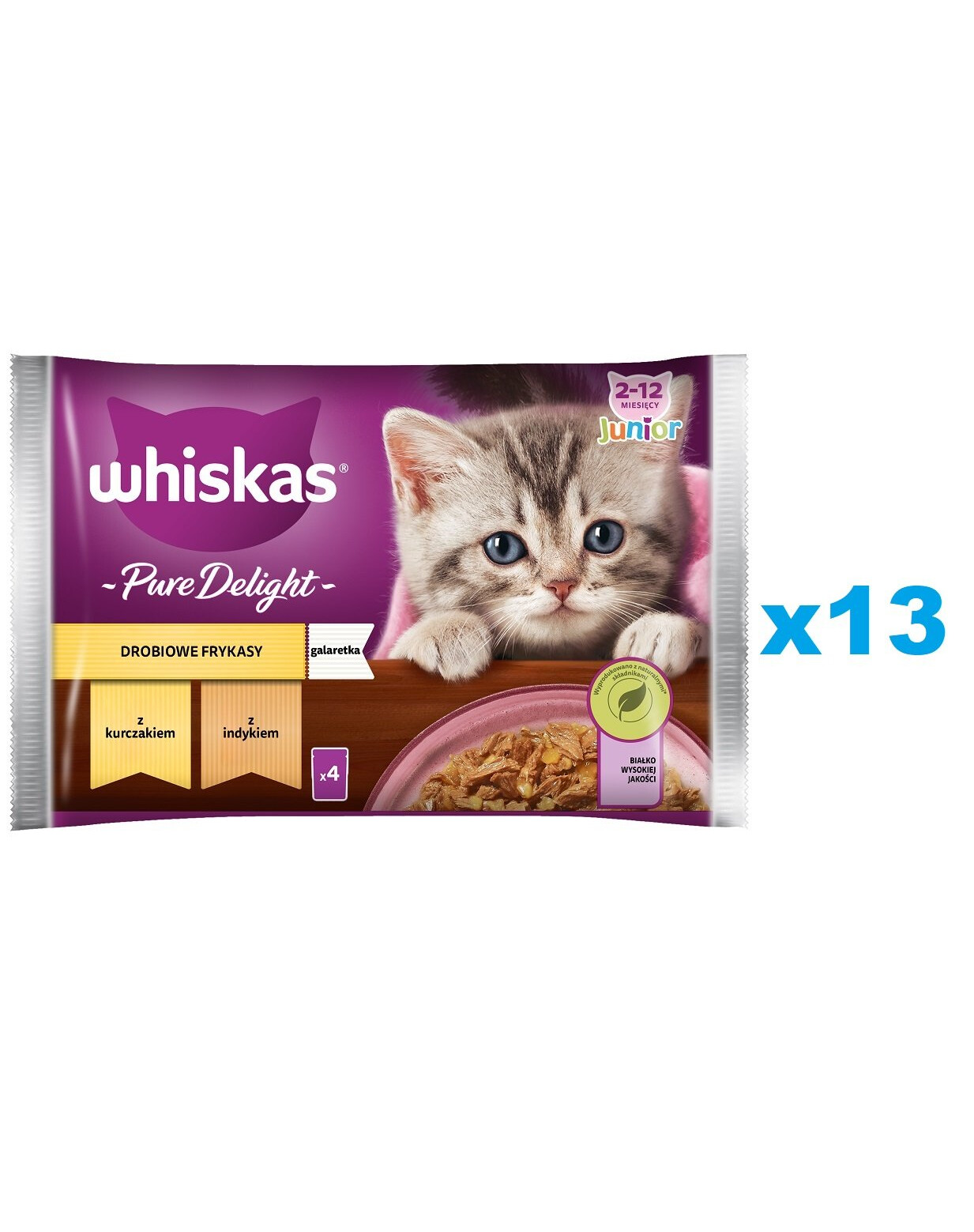 I pasti Whiskas in gelatina sono stati appositamente preparati per conservare il valore nutrizionale naturale e il sapore degli ingredienti di alta qualità. Faranno sì che il tuo gatto corra verso la ciotola più velocemente che mai! Il tuo amico felino apprezzerà una delle due varianti: bocconcini con pollo e tacchino. Questo gustoso alimento in una comoda bustina contiene zinco, che favorisce la salute della pelle e del pelo, mentre il giusto equilibrio di minerali aiuta a prendersi cura delle condizioni del tratto urinario del tuo animale domestico. Dai gattini giocosi agli splendidi gatti adulti, le nostre deliziose ricette sono pensate per far sì che i gatti di tutte le età facciano le fusa con soddisfazione durante i pasti e non solo.