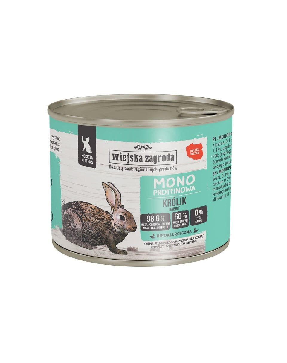 Scoprite le crocchette umide monoproteiche Wiejska Zagroda per gattini. Ogni lattina contiene un solo tipo di carne, che occupa il primo posto in ogni composizione!