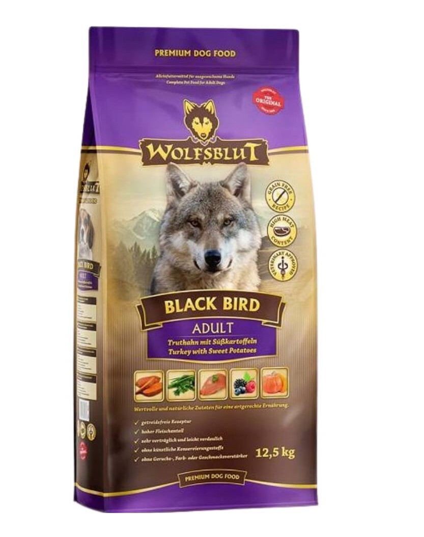 WOLFSBLUT BLACK BIRD ADULT è un alimento secco completo per cani adulti con tacchino, in cui l'alimentazione ancestrale si combina con le esigenze moderne del vostro cane. Ciò consente al vostro cane di godere di un'alimentazione naturale e adeguata ogni giorno.