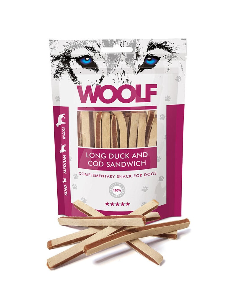 carne d'anatra 77% merluzzo 20% amido 2% glicerina 0,5%